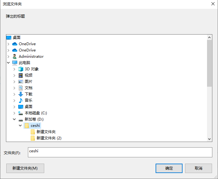 Directory 当对话框出现时,传递的值显示为当前选择的目录。返回的值为新选择的目录。