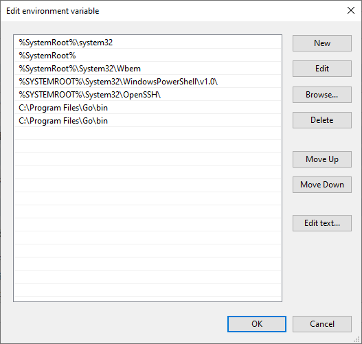 Path=C:\Windows\system32;C:\Windows;C:\Windows\System32\Wbem;C:\Windows\System32\WindowsPowerShell\v1.0\;C:\Windows\System32\OpenSSH\;C:\Program Files\Go\bin;C:\Users\LIANG\AppData\Local\Microsoft\WindowsApps;C:\Users\LIANG\go\bin