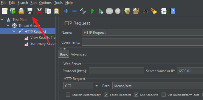打开软件 -> 新建线程组 -> 新建http请求 -> 新建结果集及测试报告 -> 保存 -> 点击开始按钮 -> 查看测试报告