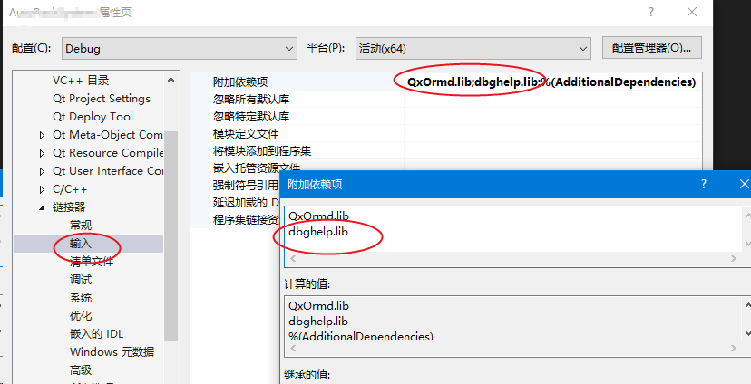 lib配置: 项目-->属性-->配置属性-->链接器-->输入-->附加依赖项 增加dbghelp.lib