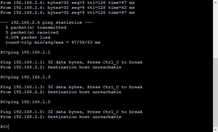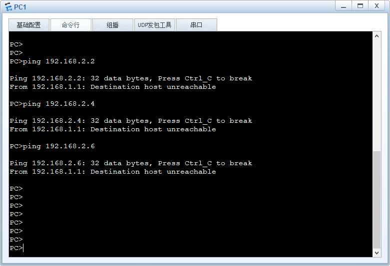 通过PING命令对PC1,PC3,PC5进行连通测试