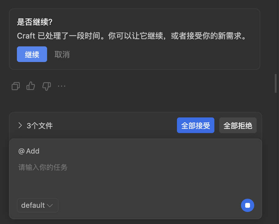 毕竟大模型可能会出现生成错误,导致可能一步错步步反思。CodeBuddy 增加了多次执行无果后的交互行为。