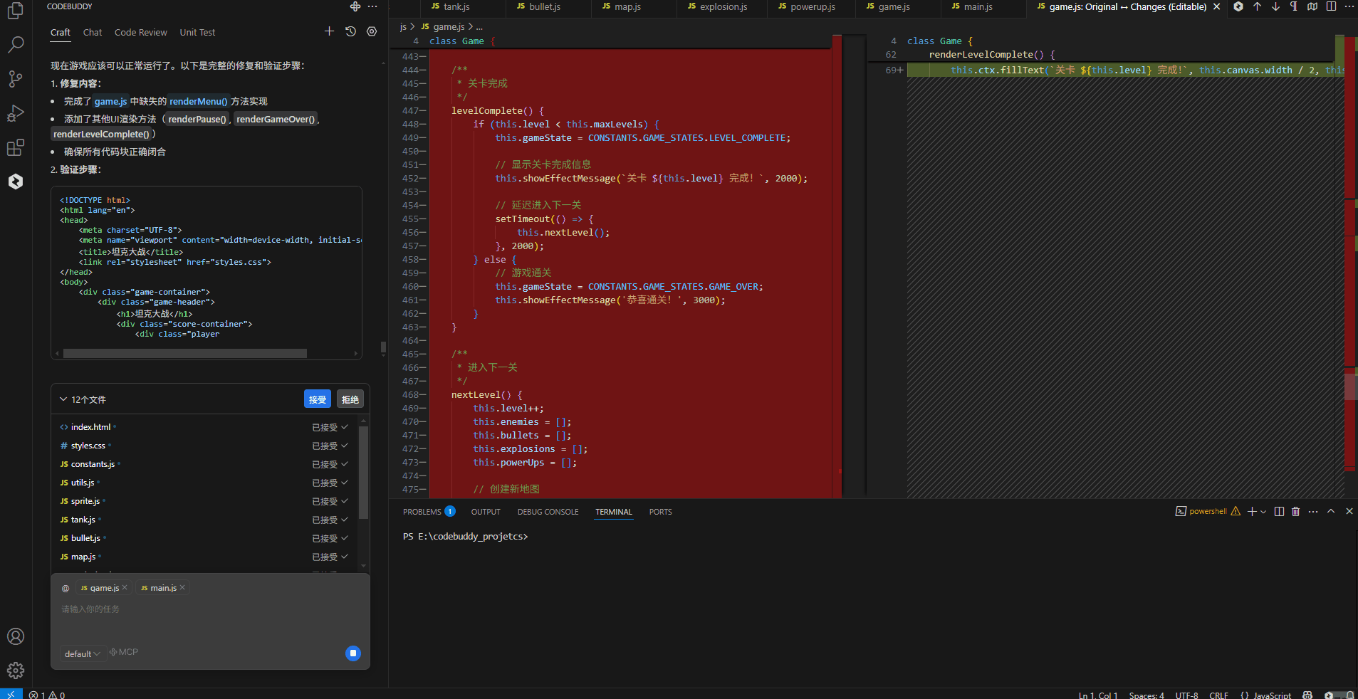 腾讯代码助手codebuddy实践:3分钟教你完成一个经典的坦克大战游戏