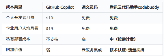 - 避免Copilot(高价策略对个人不友好主流的AI代码开发插件对比分析)。