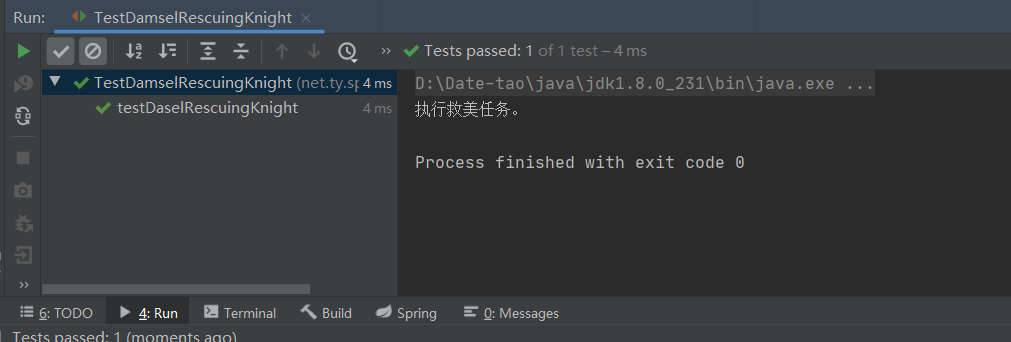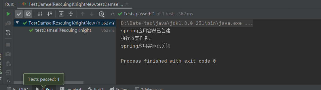 * 功能:采用Spring容器测试救美骑士类