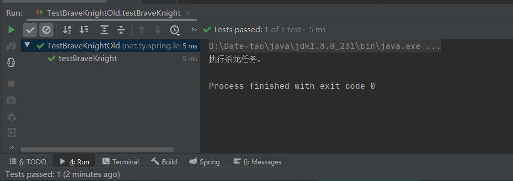 * 功能:采用spring测试勇敢骑士类