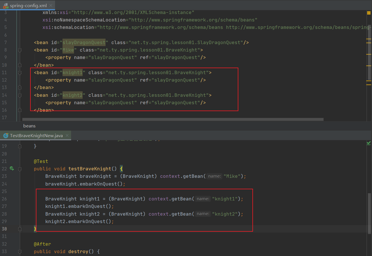 <bean id="Mike" class="net.ty.spring.lesson01.BraveKnight">