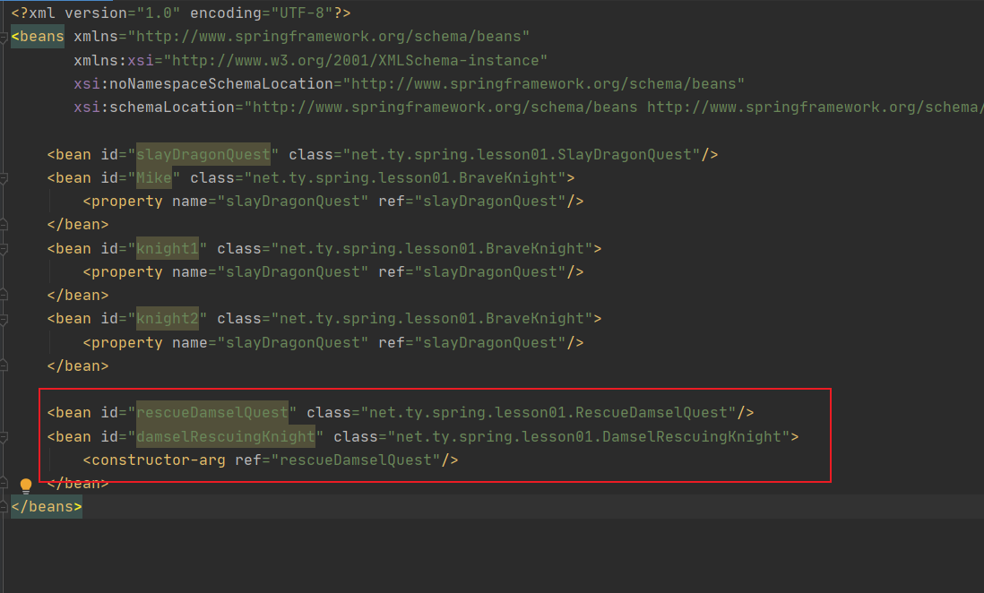 <bean id="slayDragonQuest" class="net.ty.spring.lesson01.SlayDragonQuest"/>