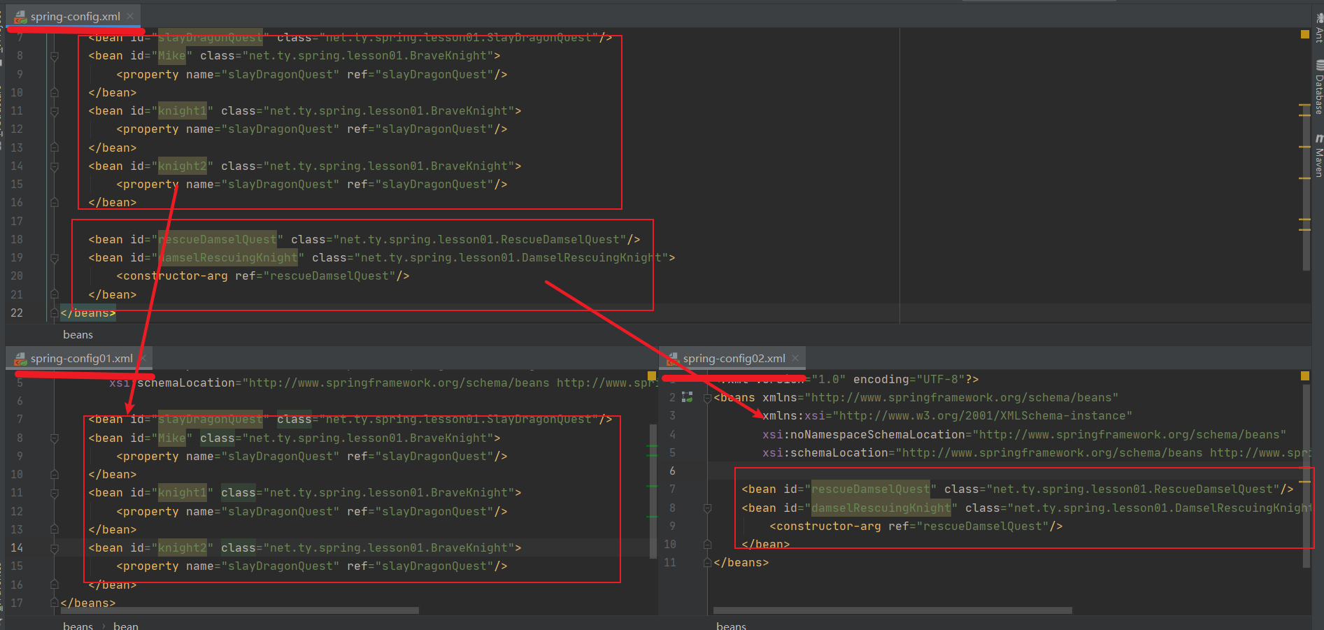 <property name="slayDragonQuest" ref="slayDragonQuest"/>