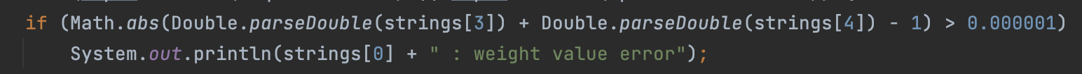由于题目中存在分项成绩权重之和必须等于1的要求,而我却忘记这些权重都为浮点型而非整形,直接就判断是否!= 1,在这卡了很久,其实只需改成误差不超过0.001即可。