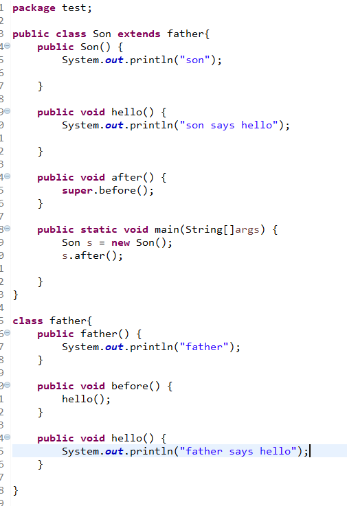 而helle方法也是动态绑定的,所以调用时根据this实际应用的对象为son对象,所以调用的son中覆盖的hello方法