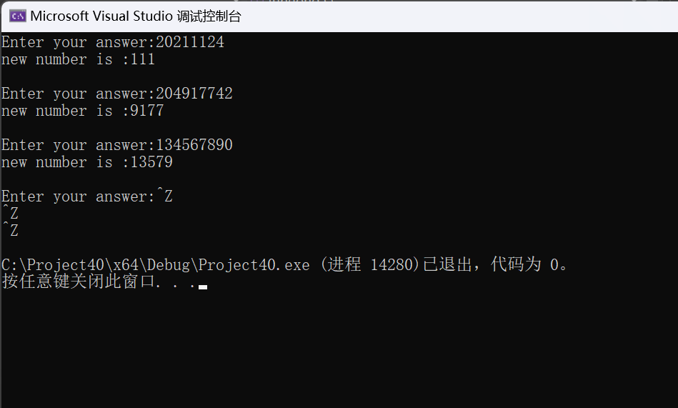 #define _CRT_SECURE_NO_WARNINGS #include<stdio.h> #include<math.h> long fun(long s); int main() { long s, t; printf("Enter your answer:"); while (scanf("%ld", &s) != EOF) { t = fun(s); printf("new number is :%ld\n\n", t); printf("Enter your answer:"); } return 0; } int fun(long s) { int a=0, i = 0; while(s>0) { if (s % 2 == 0) s = s / 10; else { i += pow(10, a) * (s % 10); s = s / 10; a++; } } return i; }