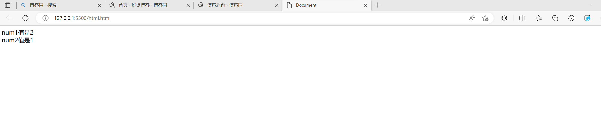 document.write(`num1值是${num1} <br> num2值是${num2}`)