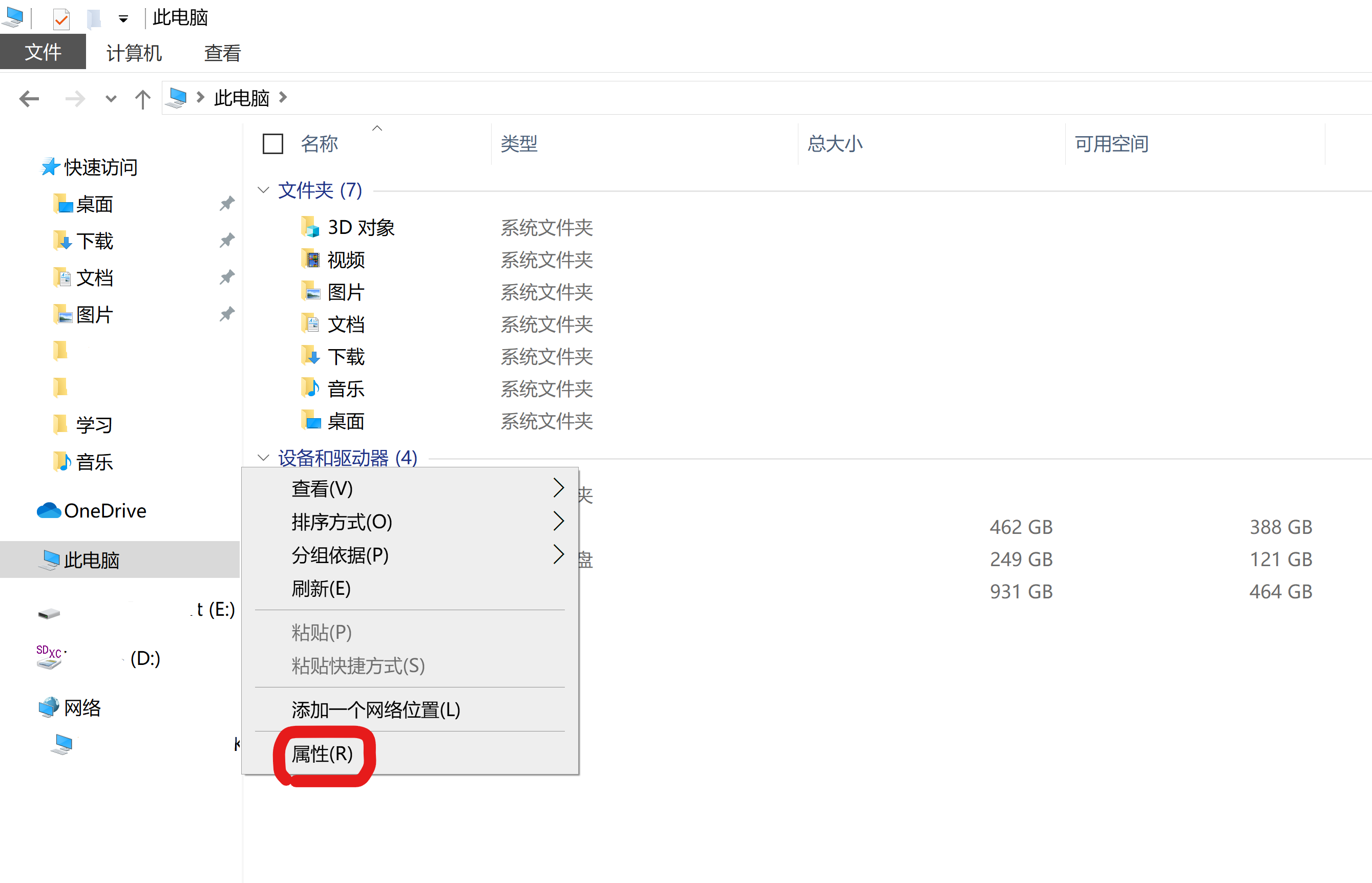 1、打开系统属性(点击此电脑,在空白处右键,选择属性)