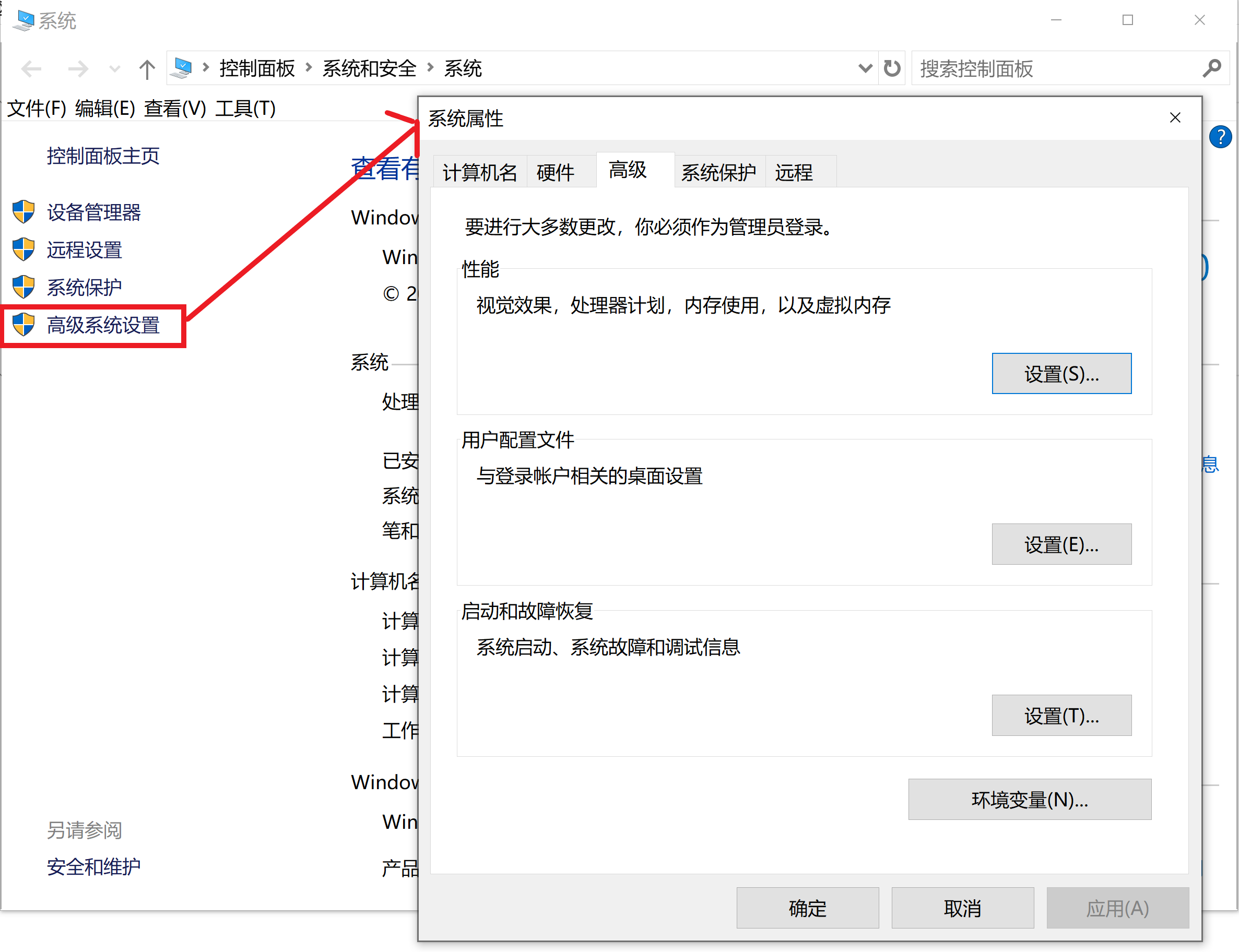 2、打开高级系统设置