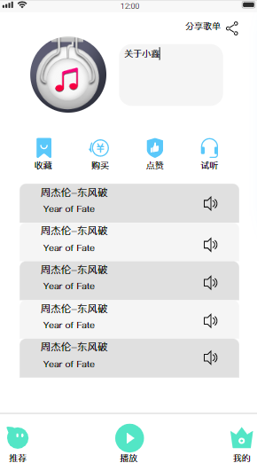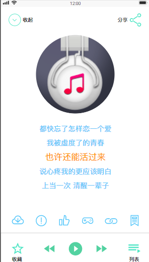 界面功能:播放歌曲,查看歌曲相关信息(歌词、乐谱等),左右按键切换歌曲。