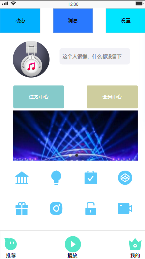 界面功能:动态、消息接收、系统设置、任务及消息中心。