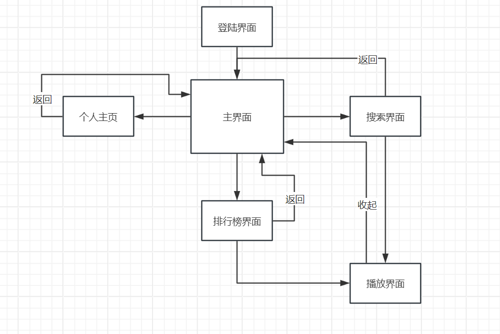 (4)主界面点击个人进入个人主页界面,点击返回回到主界面