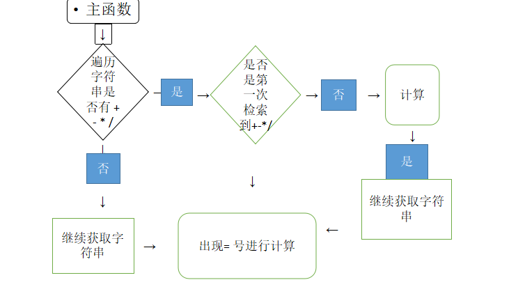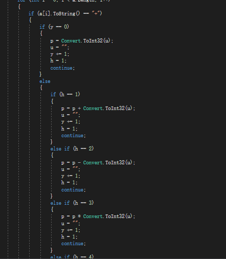 先定义一个h 负责判断+-*/,比如当h = 1 h = 2时 分别表示检测到+ 和 -