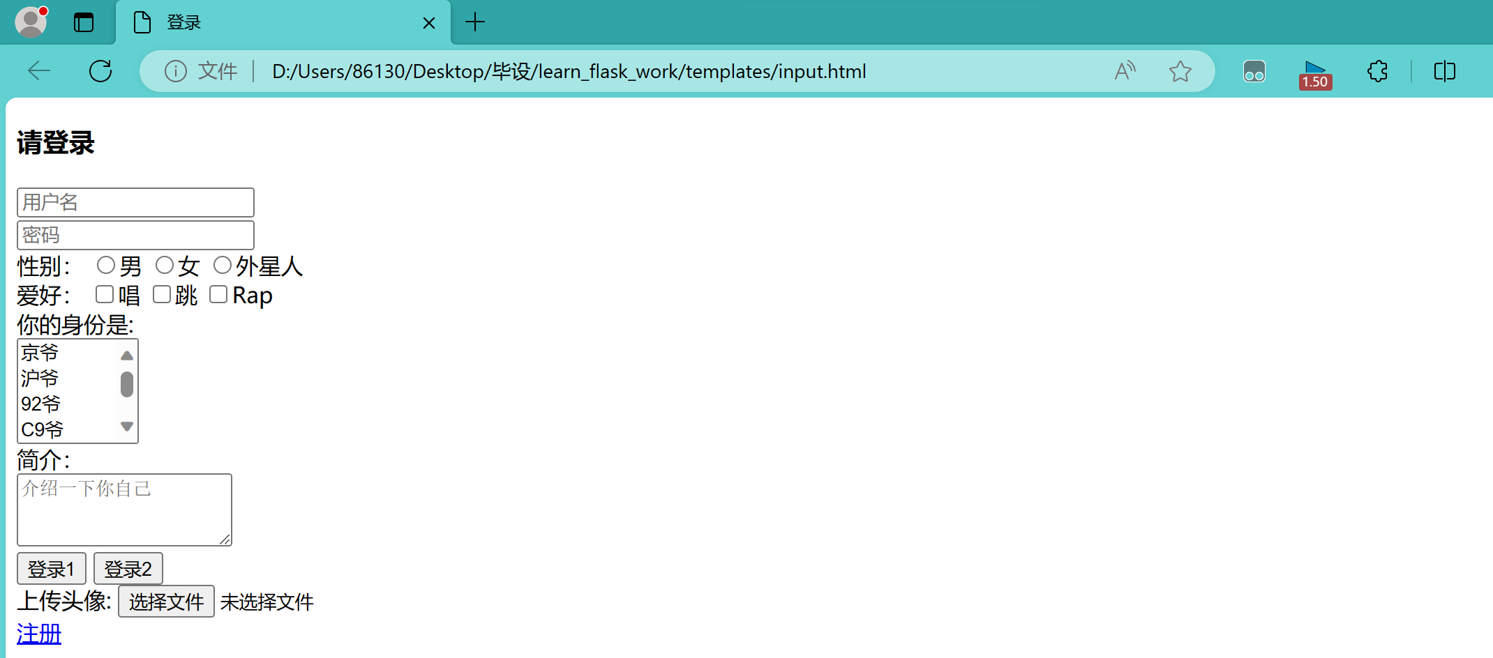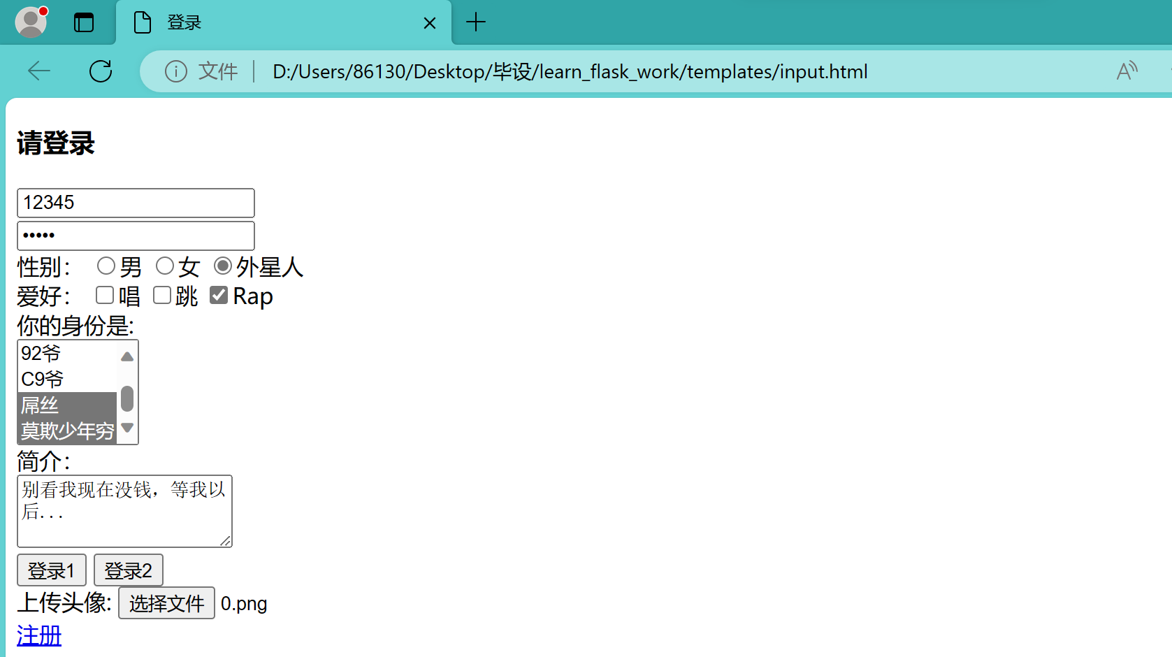 <input type="submit" value="登录1"><!--两种不同按钮submit:提交表单按钮 button:普通按钮-->
