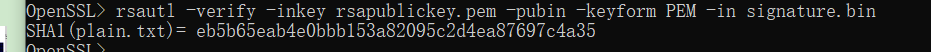 (3)利用上述私钥对摘要digest.txt进行签名,生成签名文档signature.bin