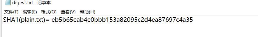 - 计算plain.txt的哈希值,输出到文件digest.txt。