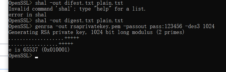 (1)创建1024位的RSA私钥,写入文件rsaprivatekey.pem,同时将私钥用3DES加密,并设置密码。