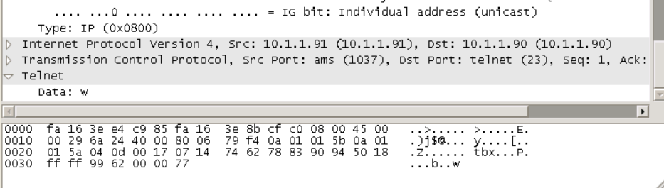 Client:到xp上,安装好Wireshark,然后Telnet server的IP,如telnet 10.1.1.44,然后就能看到欢迎界面