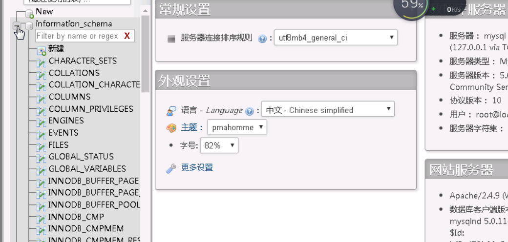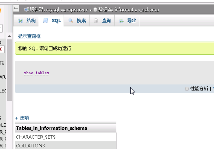 在phpmyadmin中,在左侧点击information_schema数据库。