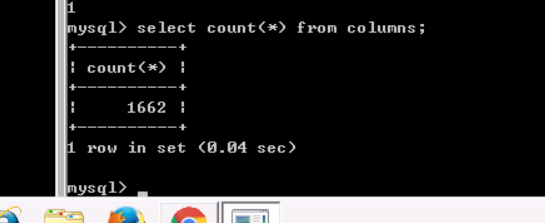 这里面,与注入相关的存在3个字段,分别是TABLE_SCHEMA、TABLE_NAME以及COLUMN_NAME,不难猜到,如果在该表中查询一条记录,TABLE_SCHEMA保存了这条记录保存的字段所属的数据库名,而TABLE_NAME保存的是该字段所属表名,COLUMN_NAME则是一个列名记录,查询一条记录验证一下,首先确定该表有多少条记录,执行select count(*) from columns;,得知一共有1662条记录,结果如下图: