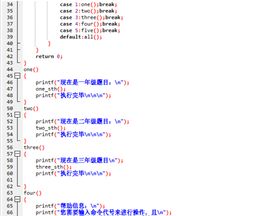 | 我在这个作业的目标是 | 使用上次作业的菜单框架,并在其基础上增加各年级题目操作函数 |