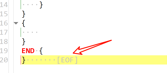 该选项打开时,会在文件结束位置显示一个“EOF”标记,如下图所示: