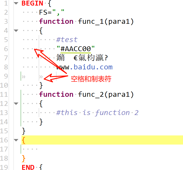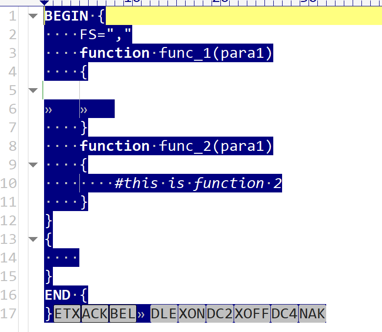 当没有打开显示空白符时,打开选择时全部显示,会在选中区域显示这些标记。