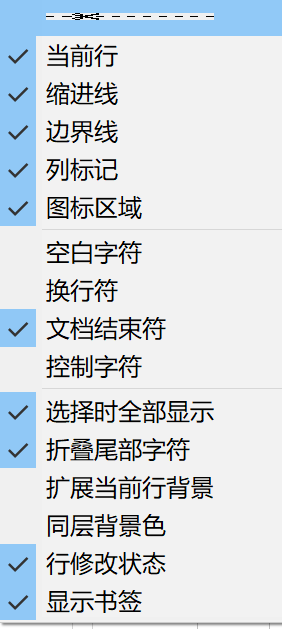 打开主菜单查看 -> 符号显示可以展开如下相关显示选项菜单