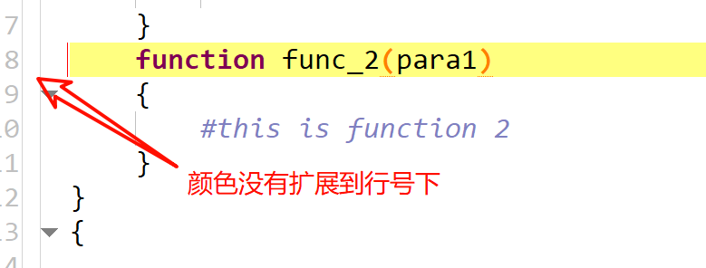 打开该选项时,当前行的底色会扩展到行号下,如图所示: