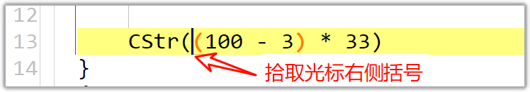 如果光标位置括号比较多,则拾取光标右侧的括号。