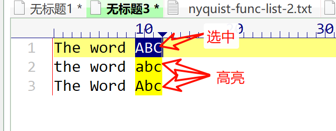 :选中的内容需要与当前单词大小写完全一致,该选项对“查看 -> 选区高亮”同样生效。