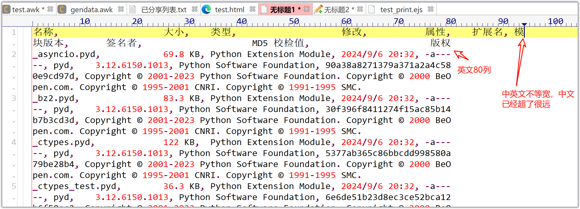,由于一般情况下Tab占用的宽度是1~N个字符,在指定列换行