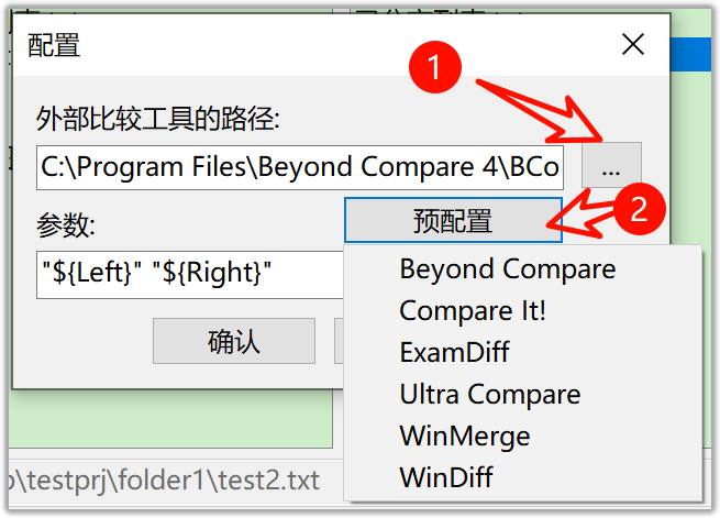为了方便用户配置外部比较工具,EverEdit预置了几种流行的文件比较工具调用参数。 -