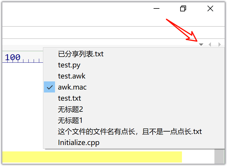 如果EverEdit打开的文件数量较多,需要左右滚动较长时间时,还可以通过下拉按钮显示文件列表,用户可以通过列表快速定位到文件,如下图所示: