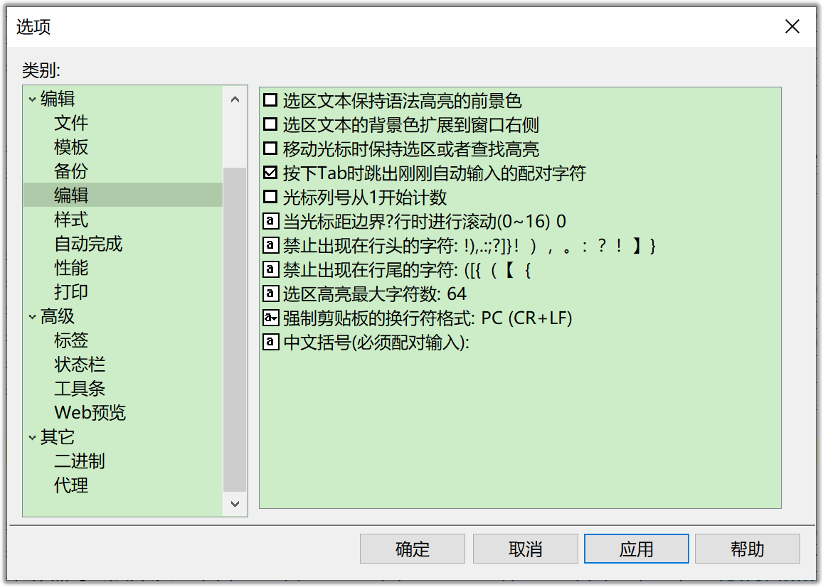 :默认值PC(CR+LF), 即复制时自动在剪贴板转换换行符。 -