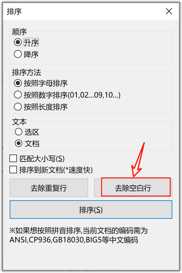 ,在弹出的窗口中单击去除空白行按钮即可删除当前文档中的空白行,如下图所示