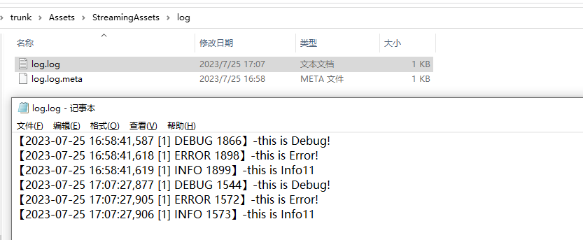 //设置 Properties(log4net.config文件中用到的日志输出路径) 中 ApplicationLogPath 为 Application.streamingAssetsPath路径