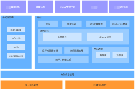 传统实体机部署,迁移Kubernetes平台,如何在引入新的体系架构过程中,确保开发、运维在日常工作不会有额外的学习成本?为此,新增管理系统,提供容器信息展示、操作和监控。