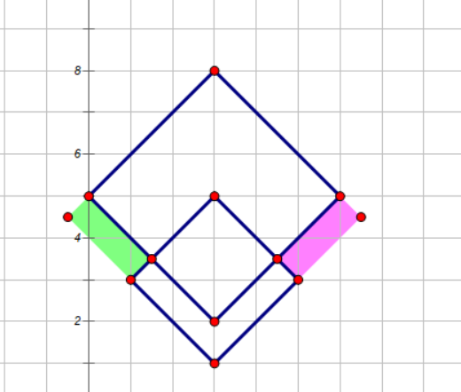 观察样例可以发现,如果两条线段对应的正方形相交,并且相交情况形如下面第一张图,那么左右两边的凹陷部分也是 Wave 所不能经过的,但如果两条线段所对应的正方形相交情况如下面第二幅图,那么上下的凹陷部分是不用补的: