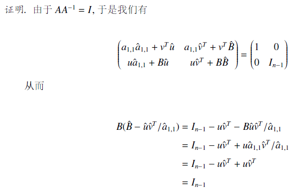 这样我们可以求 \(n\) 次逆,复杂度 \(O(n^4)\)。继续优化。考虑去掉一行一列后怎么快速维护矩阵的逆的变化,这里引用下博客里的图。