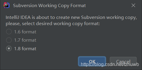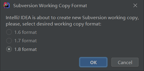 选择 SVN 目录副本格式为 1.8。如果不能选择,请查看文章后面的 Q2。
