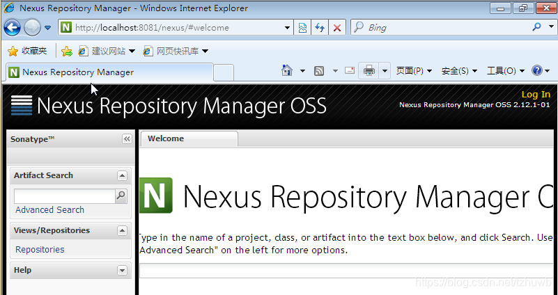 如果启动成功,没提示错误,则访问 http://localhost:8081/nexus/,启动后页面如下: