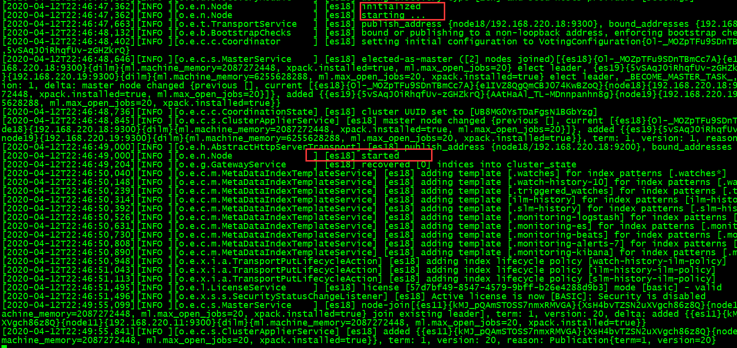如果各个节点日志看到下面的信息,说明集群启动基本没问题: