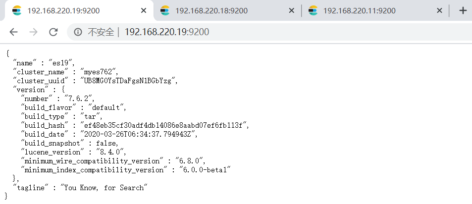 也可以通过访问 http://192.168.220.19:9200/_cat/nodes 查看集群状态: